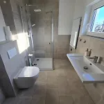 Η Haus Dresden, Pool, Garten, Terrasse, Familienfreundlich έχει μπάνιο με ξεχωριστή τουαλέτα και ντους. Τα μπάνια επίσης διαθέτουν στεγνωτήρα μαλλιών και μεγάλες πετσέτες μπάνιου για περισσότερη άνεση.